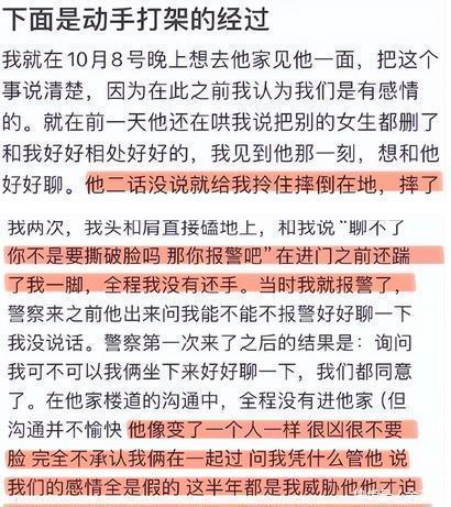 荣梓杉那边还提到“女方长时间向他发一些误导性的亲密照片”,故意营造出一种亲密的氛围。女方还曾威胁男方跳楼,情绪激动时甚至想拉着荣梓杉一起去死,总之,这是个情绪很不稳定的人。
