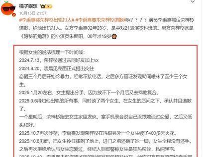 再说,荣梓杉的经纪人在这事里头也扮了挺关键的角色。李禹熹透露,跟荣梓杉第一次分手的时候,男方明显承认了自己出轨,还向她表达了歉意。没过几天,他又翻脸了,声称女方只是狂热粉丝,一直在缠着他,跟他们之间根本没有感情关系。